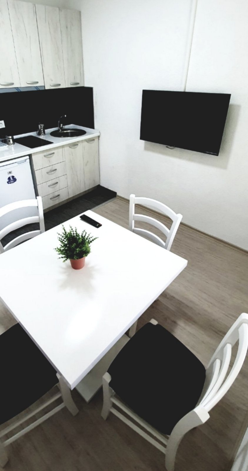 Апартманите се комплетно нови и опремени со wifi, клима, сопствени тоалети, ладилници, комарници на прозорците и индивидуални тераси.